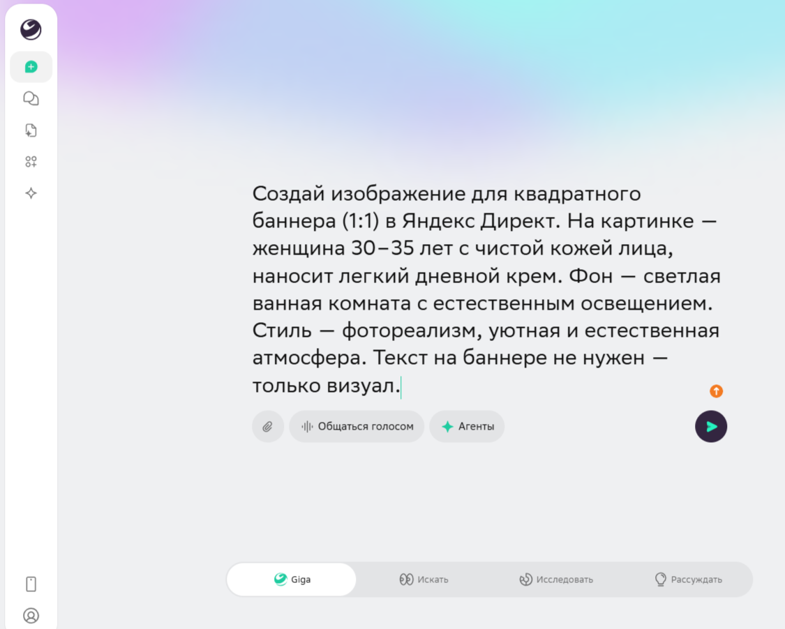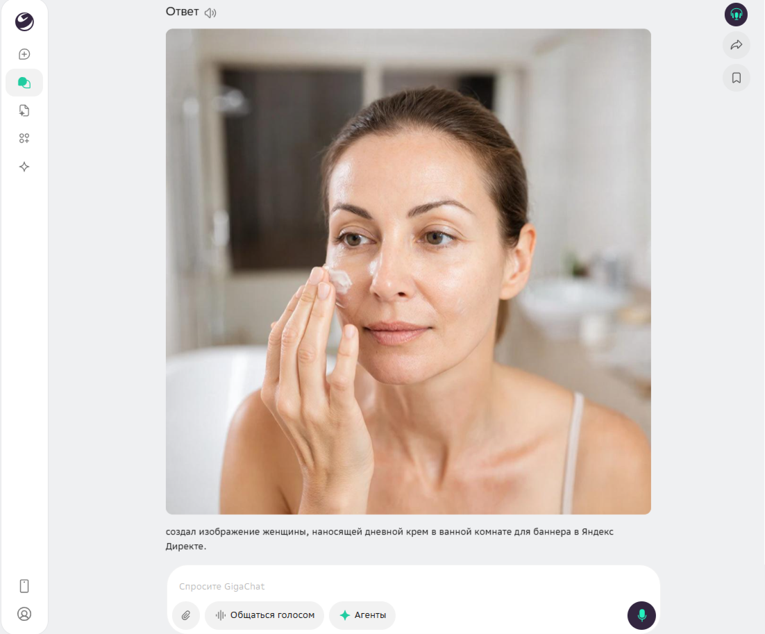 - ГигаЧат — нейросеть от Сбера. Она умеет работать с текстами, решать аналитические задачи и генерировать изображения и видео по описанию, а также оживлять фотографии. Это удобный инструмент для создания как текстовых креативов, так и визуалов.