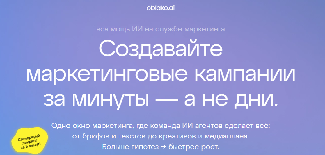 Платформа, которая использует нейросети для автоматизации подготовки кампаний в Яндекс Директе, VK Рекламе, myTarget и Telegram Ads. Система поэтапно выполняет задачи: анализирует сайт и конкурентов, формирует УТП, создает тексты и адаптированные креативы.