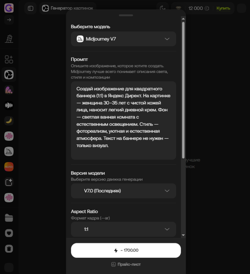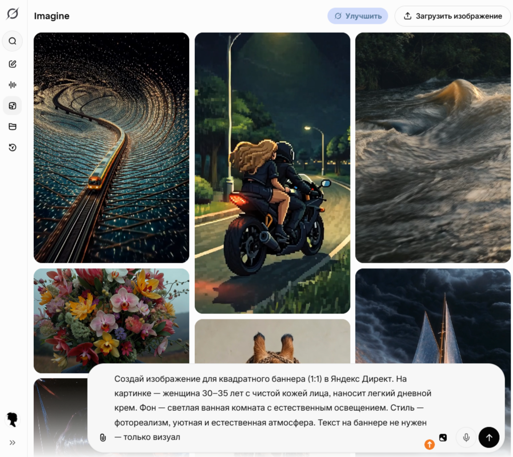 - Разработка визуального контента. Нейросети облегчают работу с визуальной рекламой, предлагая креативные решения. Они могут создавать оригинальные изображения для баннеров, адаптировать размеры под разные площадки и даже генерировать простые видео. Это серьезная помощь, особенно когда нужны многочисленные варианты креативов для тестов.