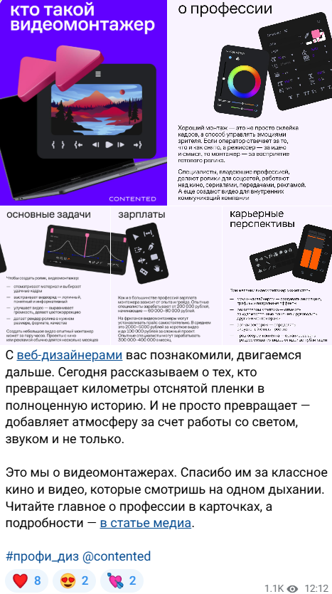Основной контент в Телеграме — это текст, но благодаря широким возможностям мессенджера, ленту можно делать разнообразной: