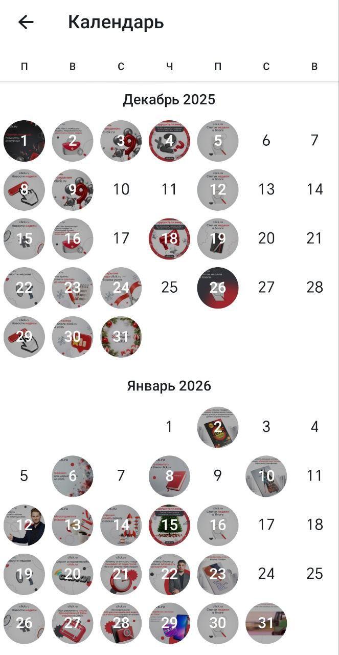 Функция для просмотра дней с публикациями. Чтобы посмотреть календарь, нужно: