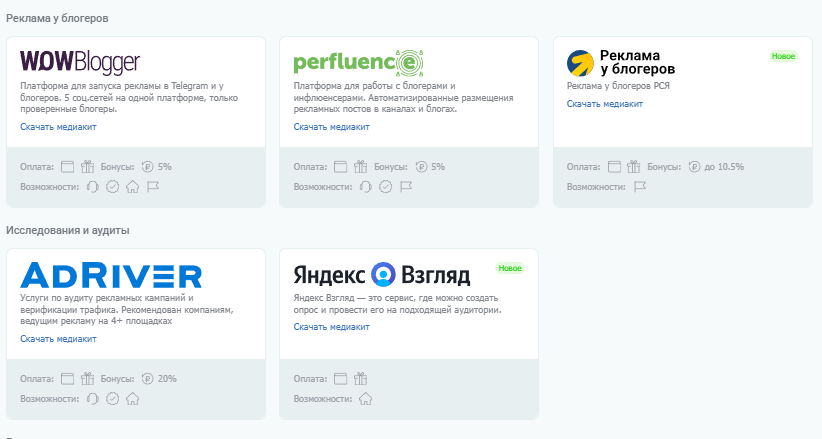 Пользователи click.ru могут оплачивать перечисленные выше сервисы бонусами, заработанными на партнерской программе. Эти и другие инструменты доступны на маркетплейсе маркетинговых сервисов.