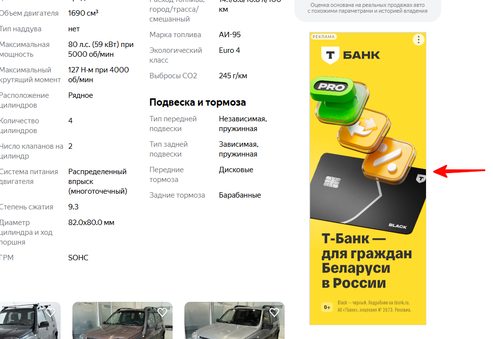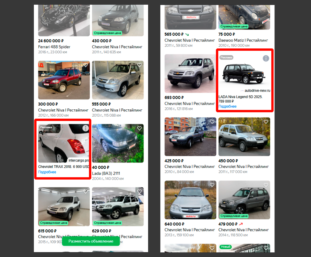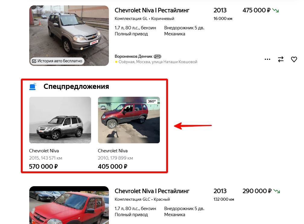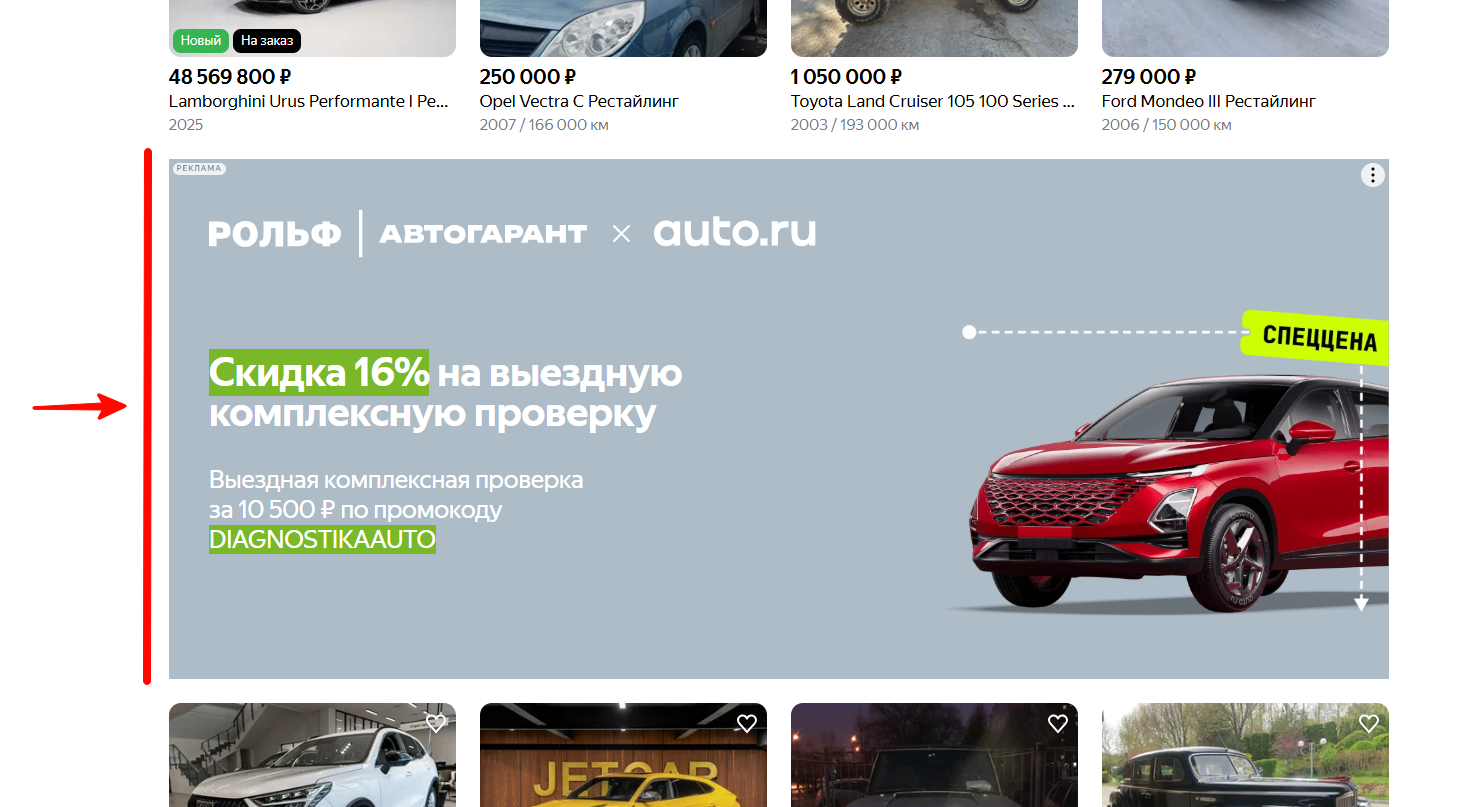3. Спецпредложение. Объявление отображается в тематическом блоке релевантных моделей, привлекая дополнительное внимание покупателей, которые сравнивают варианты.