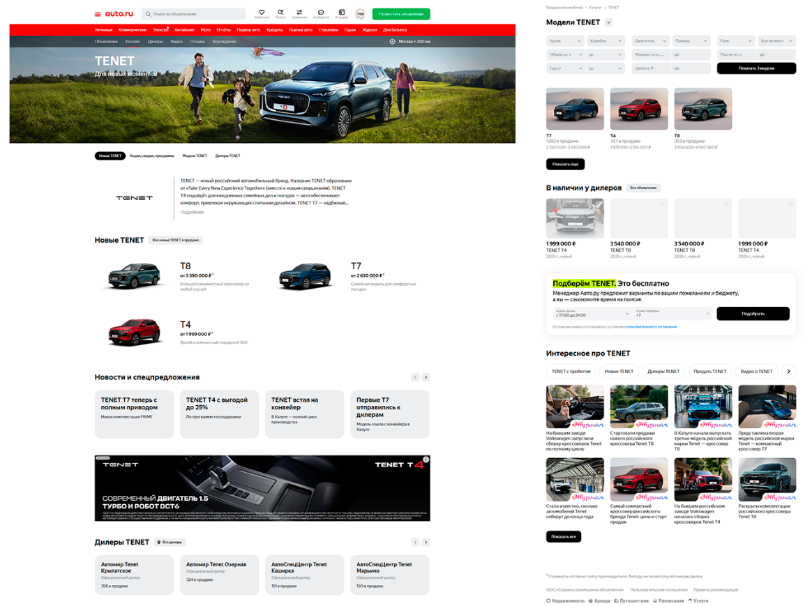 Это не просто страница бренда, а отдельная вселенная внутри Авто.ру, адаптированная под фирменный стиль производителя. Здесь бренд получает возможность говорить с аудиторией напрямую без отвлекающих факторов.