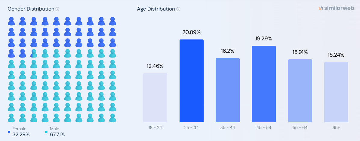 Аудитория Авто.ру — преимущественно мужчины (67%) в возрасте 25-54 года. Это экономически самостоятельные пользователи, часто с высокой покупательской способностью. По данным Яндекса, у 65% аудитории площадки доход выше среднего.